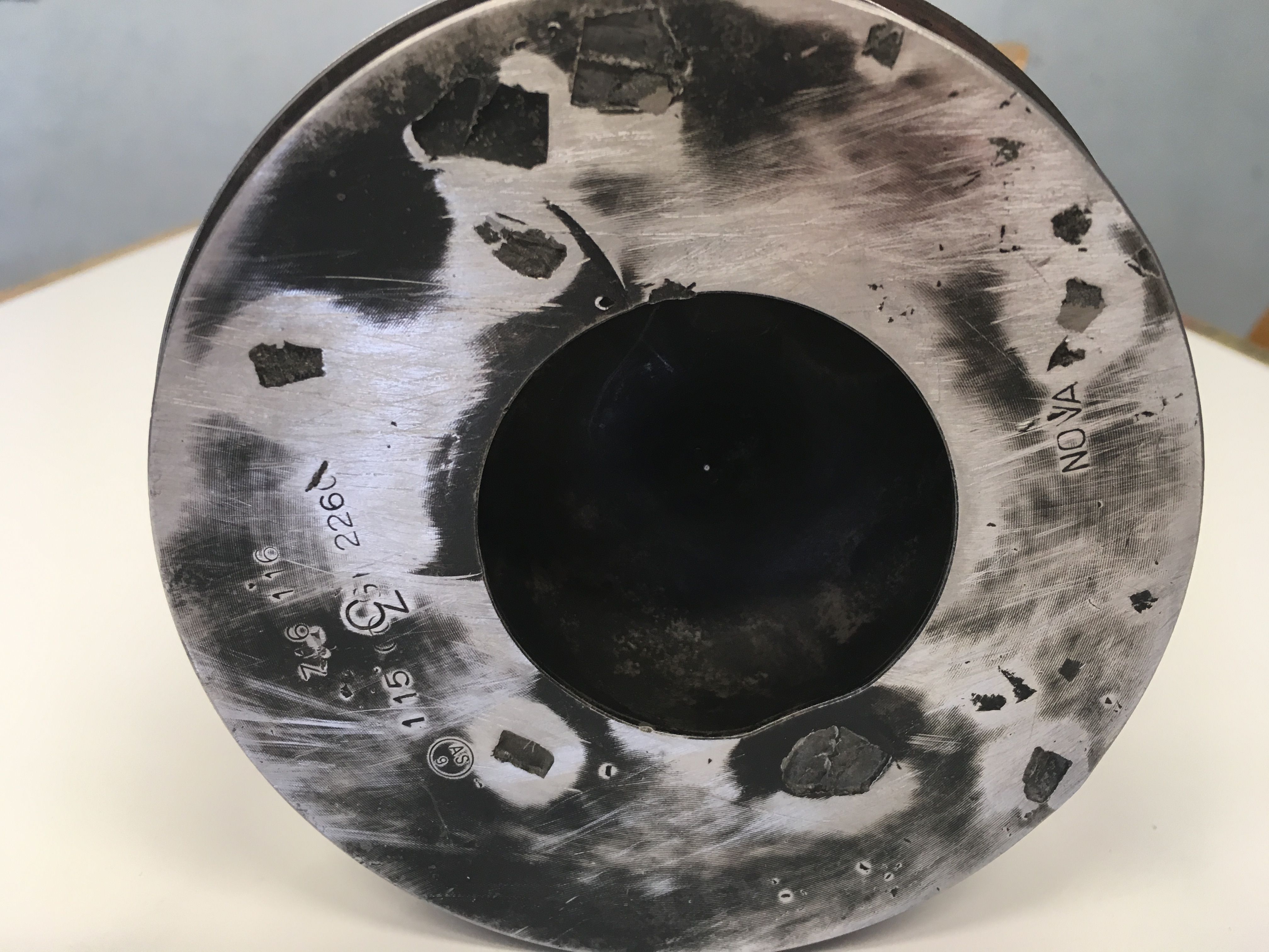 Dies ist ein Kolben eines Saurer 2DM-Lastwagens. Der 1959 zum ersten Mal gebaute Lastwagen wurde jahrelang für die Schweizer Armee hergestellt. Die Form der Kolben-Front wurde neu von Saurer entwickelt. Sie führt zu einer besseren und effizienteren Kompression. Dieser Kolben stammt aus der Sammlung eines Physiklehrers. Er war bereits in jungen Jahren ein Fan von Saurer und besitzt zahlreiche Erinnerungsstücke.