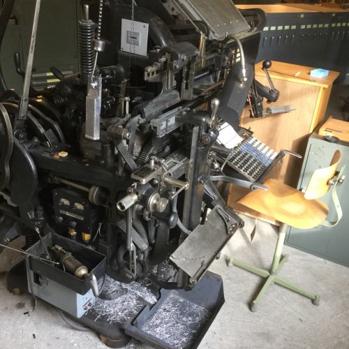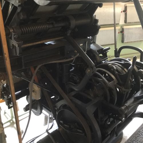 Eine Setzmaschine wird dazu verwendet, sogenannte Matrizen zu setzen. Auf der Tastatur werden die Buchstaben eingetippt, die Matrizen gesetzt und die Buchstaben in Blei gegossen. Daraufhin sind sie druckbereit. Die abgebildete Maschine stammt aus dem Jahr 1949 und wurde bis 1981 von der Firma Otto Schläpfer in Weinfelden genutzt. Als die Firma ihren Bestand liquidierte, übernahm das Bischofszeller Museum Typorama das Gerät. Gesucht wurde eigentlich nach einer Druckmaschine, man fand aber per Zufall diese Setzmaschine des Modells Intertype. Im Typorama ist diese Maschine auch heute noch im musealen Einsatz.