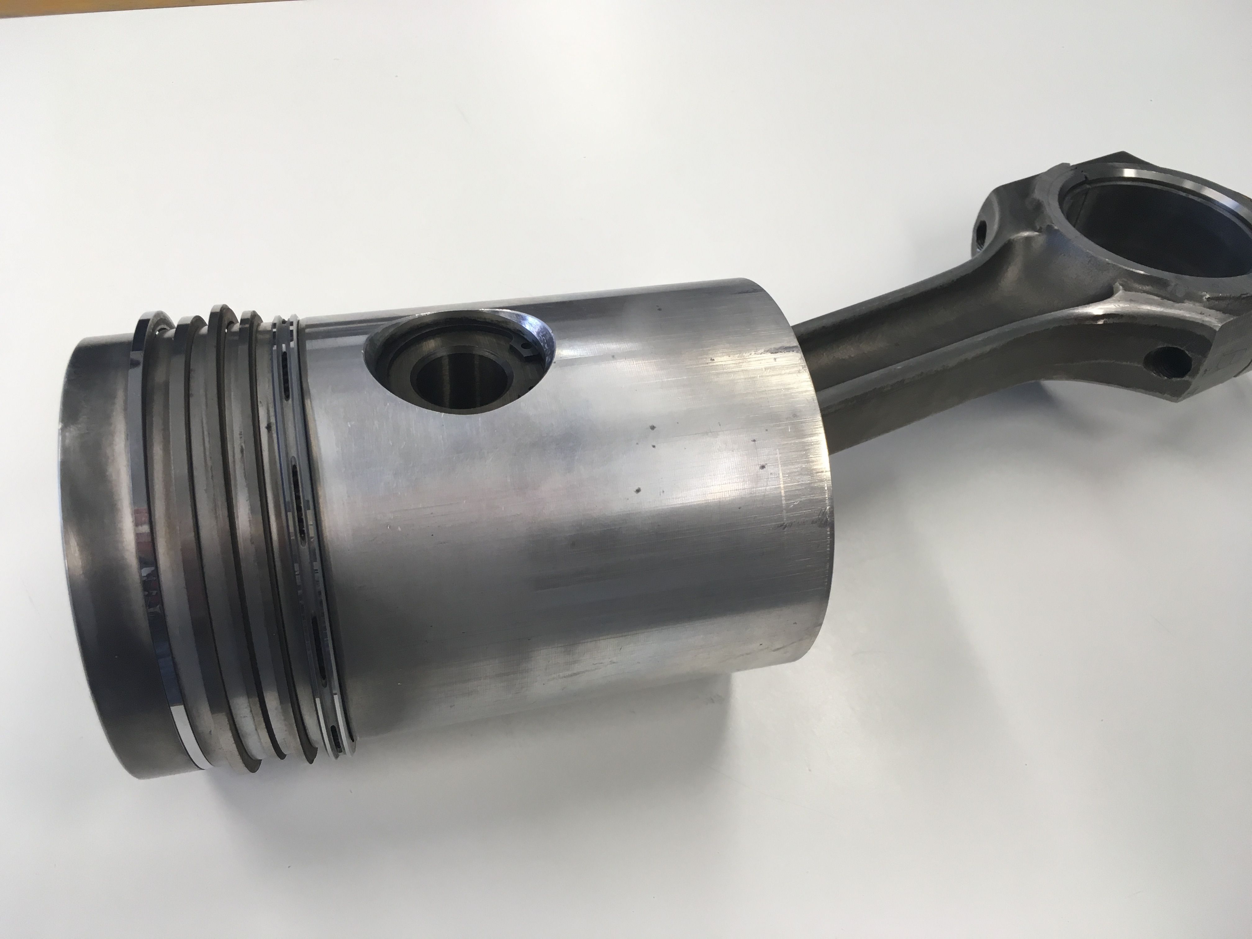 Dies ist ein Kolben eines Saurer 2DM-Lastwagens. Der 1959 zum ersten Mal gebaute Lastwagen wurde jahrelang für die Schweizer Armee hergestellt. Die Form der Kolben-Front wurde neu von Saurer entwickelt. Sie führt zu einer besseren und effizienteren Kompression. Dieser Kolben stammt aus der Sammlung eines Physiklehrers. Er war bereits in jungen Jahren ein Fan von Saurer und besitzt zahlreiche Erinnerungsstücke.